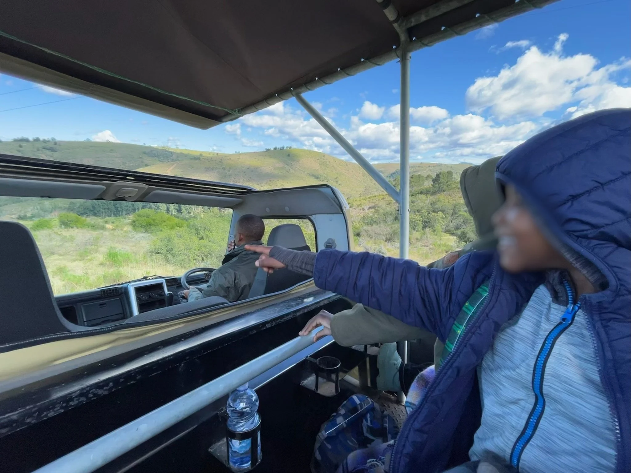 After the lions we started to head back to the lodge, where a gourmet lunch was waiting to be served to the kids. But along the way, we also came across a herd of cape buffalo, and thus the kids got to see all but one of the iconic Big 5. This was quite a proud accomplishment for them, especially since they had never had the opportunity to witness wildlife like this before!