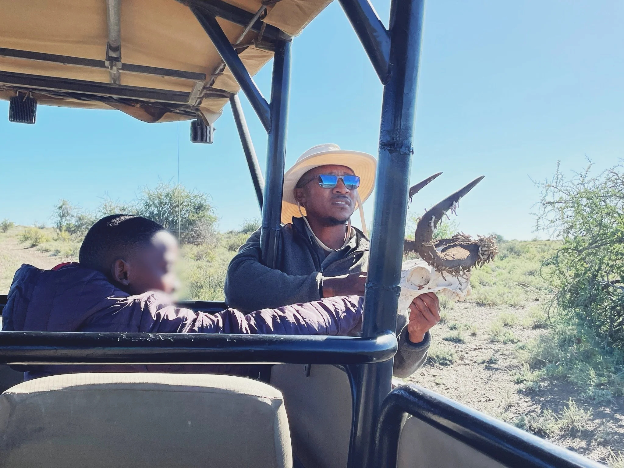 After spotting some kudu and then, as Ella laughed, a steenbok around EVERY corner, we came across fresh lion tracks. Freddie once again showed the boys and girls how to use the telemetry machine. But he put it away and said, that it is better and more rewarding to use your skills and find animals on your own instincts.