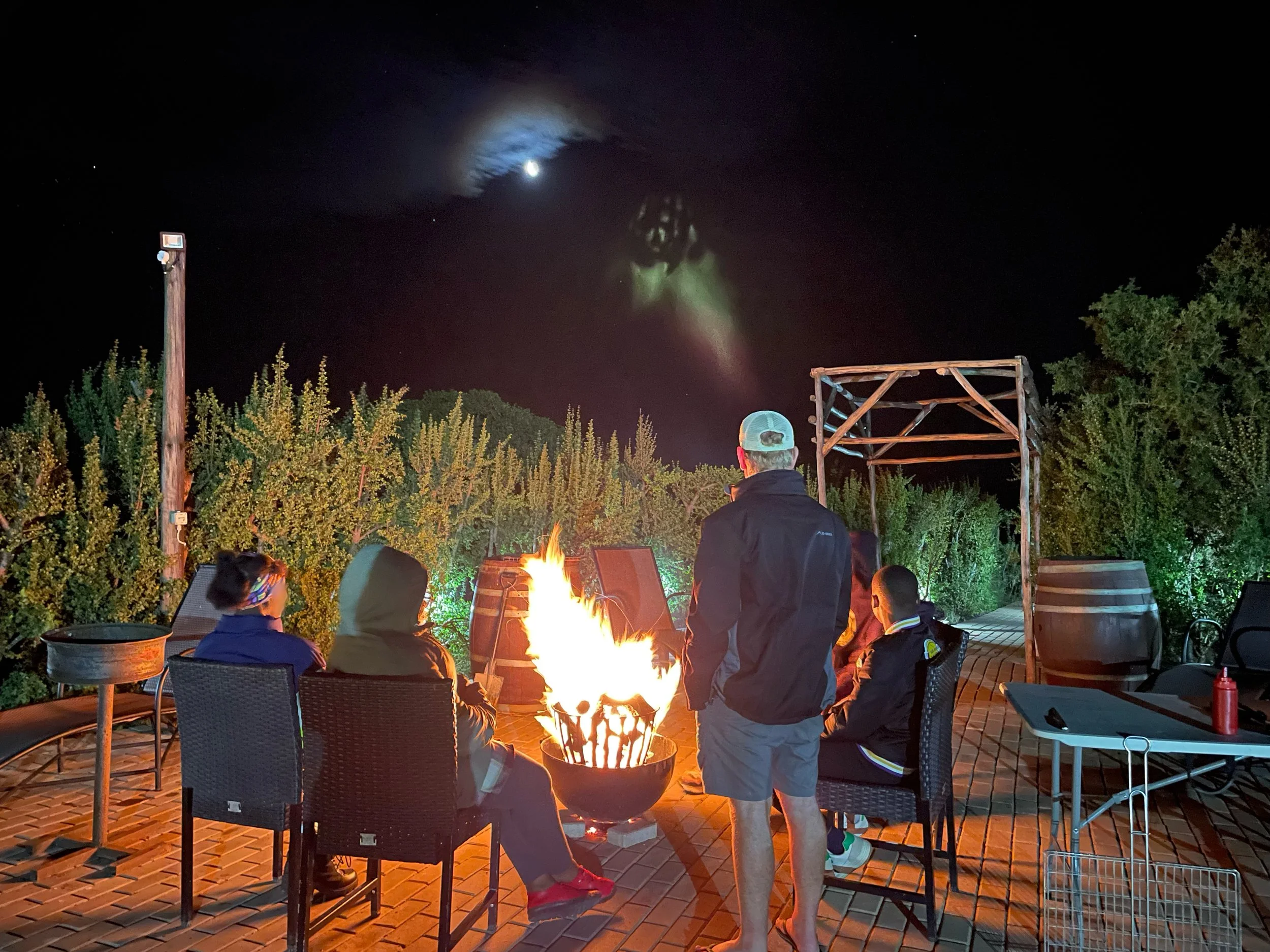 As night fell, we all gathered at the beautiful boma to have a braai and fireside chat. Though, also iconic of the Karoo, it got very cold and windy! Everyone huddled close to the fire, and the chatting commenced.