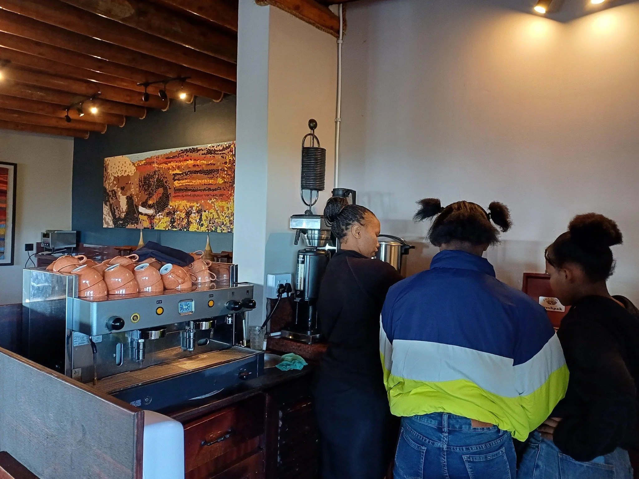Each one of us shared our favorite experience from the day, Ella enjoyed the rhinos the most, and had been very moved by that entire experience. Both the boys expressed their deep love for their new found skill, tracking, but also they loved the elephants and learning about conservation. The girls shared their highlights, one was the setting of fine dining tables and the beautiful details that went into this, and the other girl described her new passion of making beautiful coffee and learning the skills of baristas.