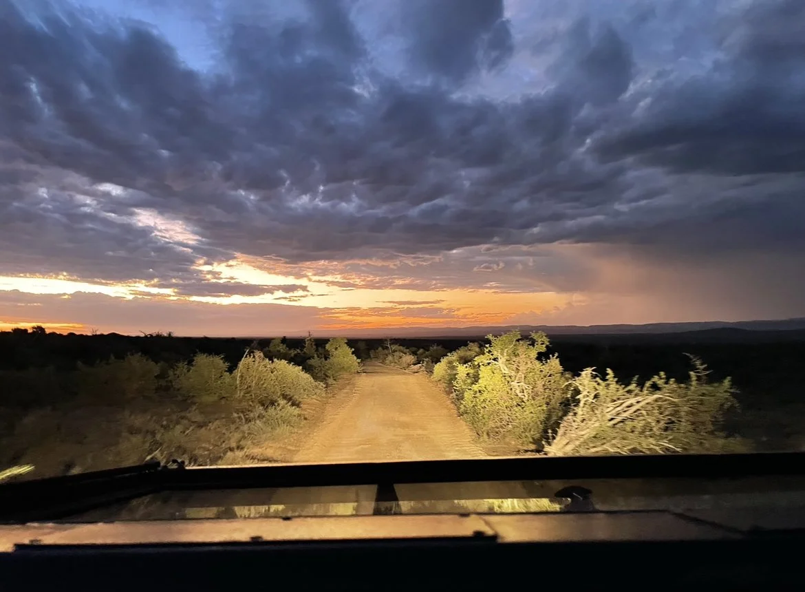The weather began to change, and so we tested them on cloud formations and weather forecasting. We had a stunning sunset. And an exhilarating night drive. Not many animals were seen, but its not all about animals on a game drive.