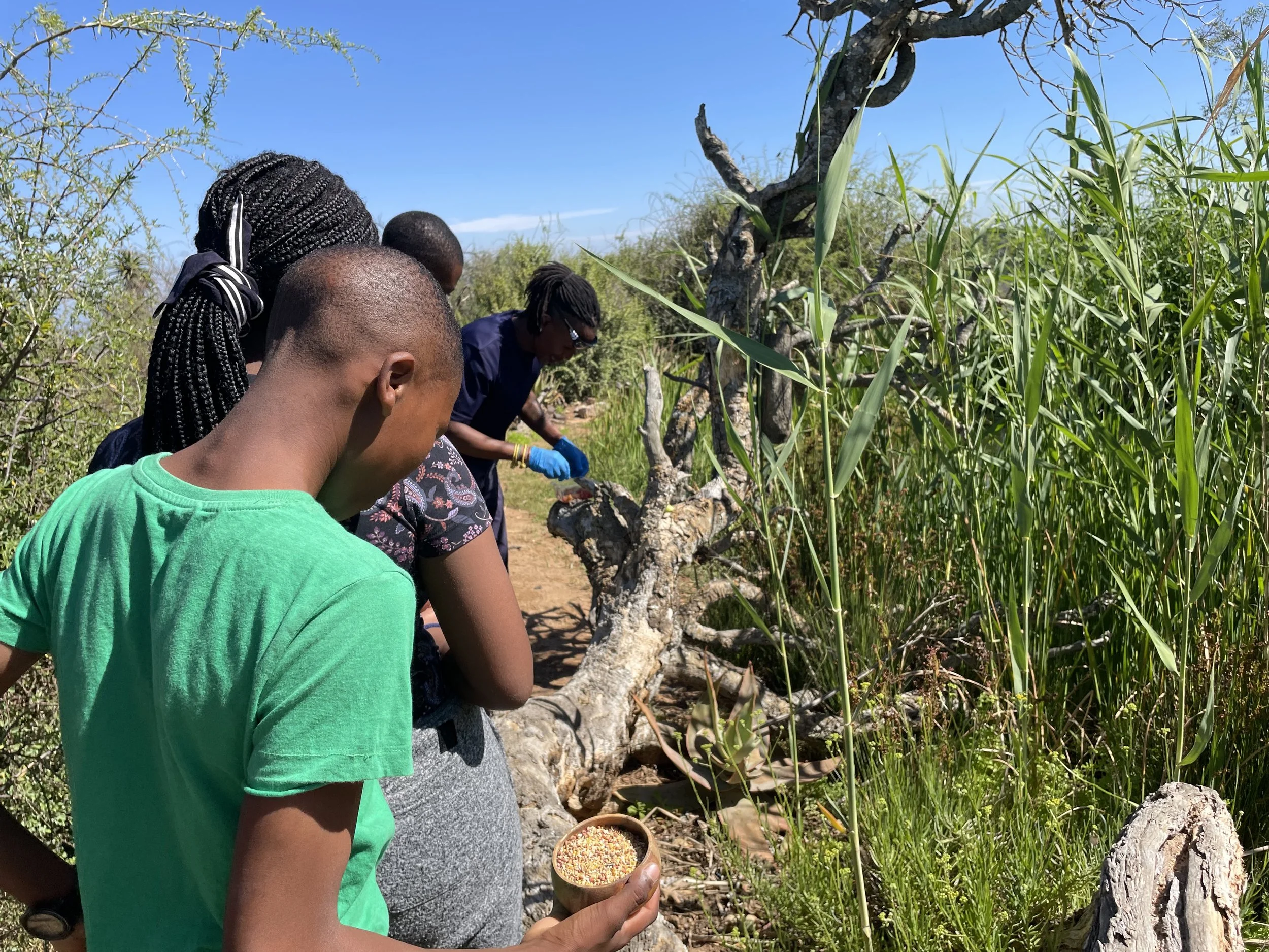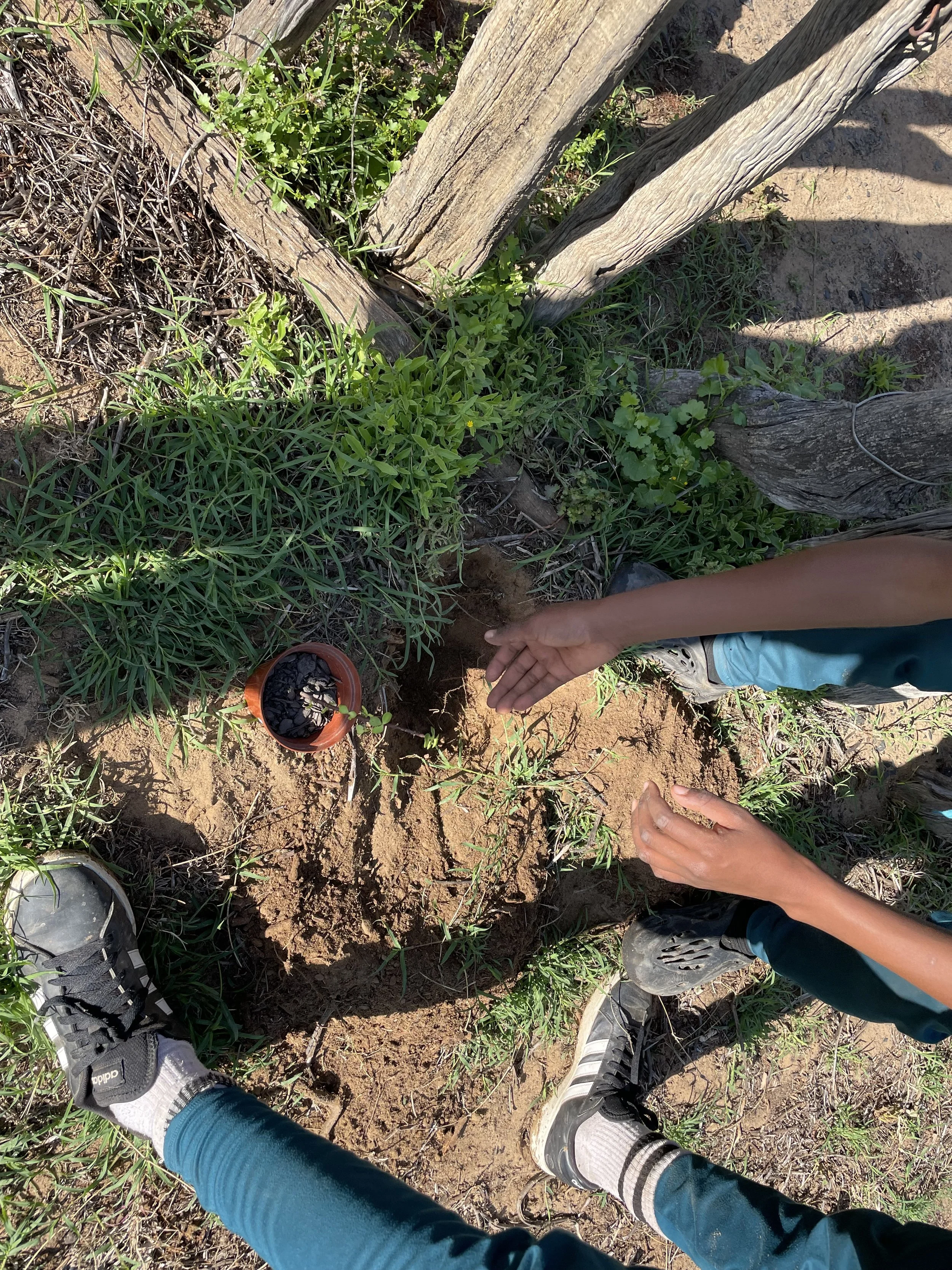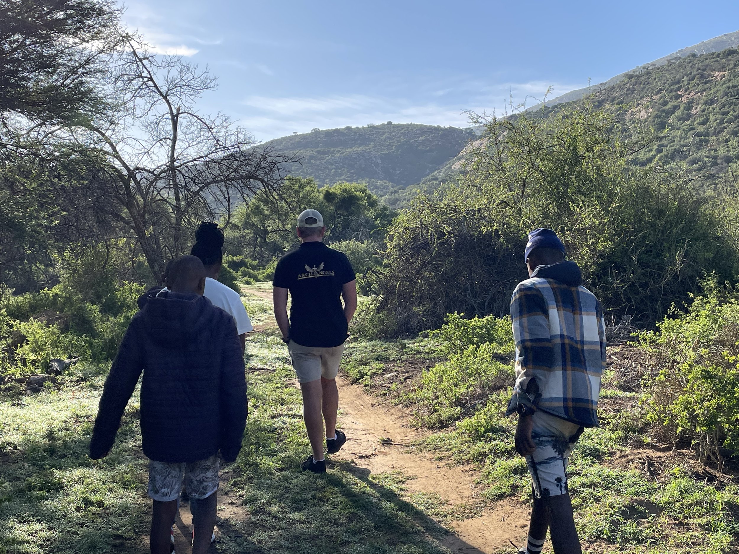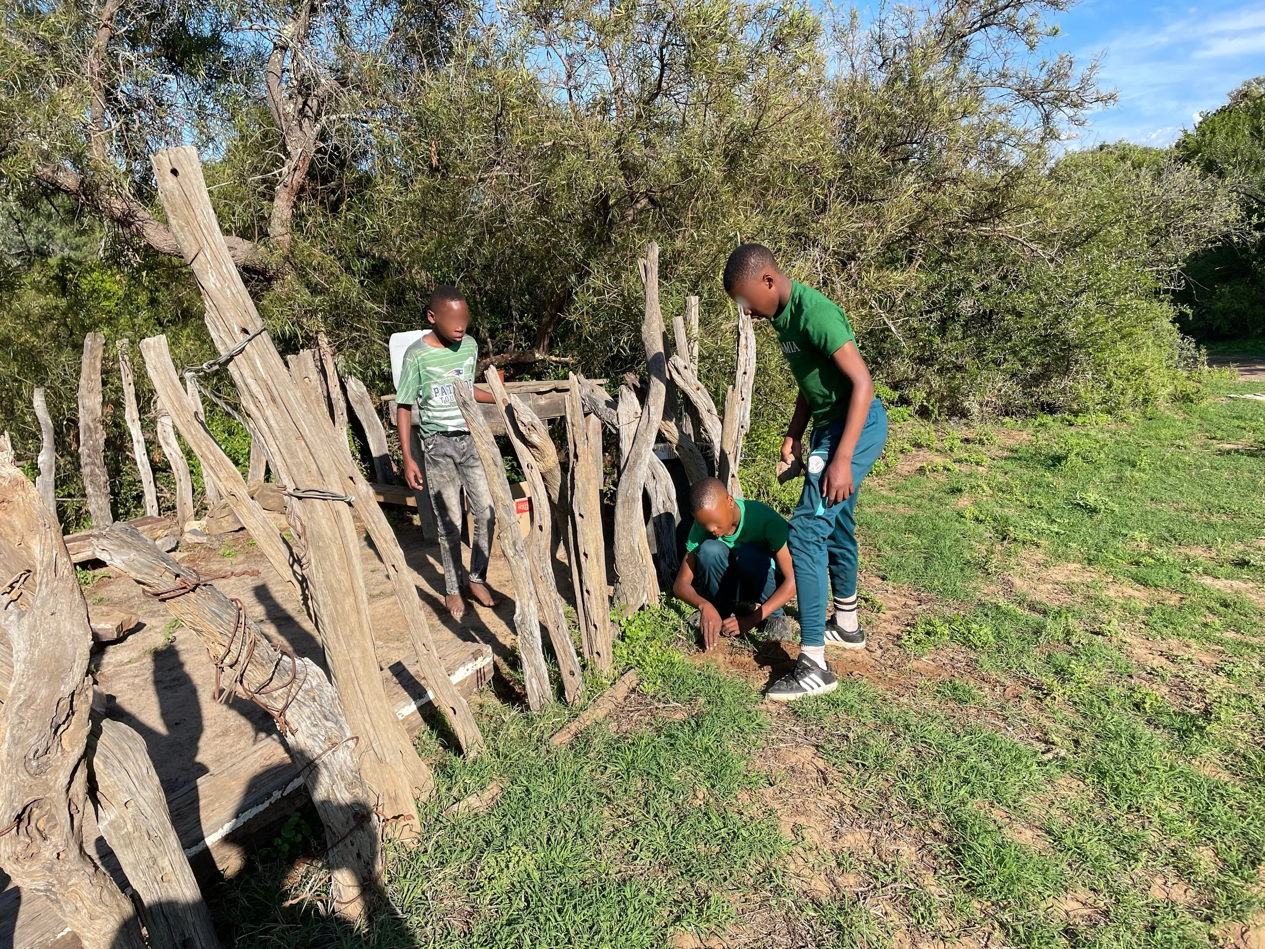 The next morning we didn’t have a lot planned, everyone was feeling exhausted, camping is fun but not everyone sleeps great. So, we got the spekboom plants we had brought with us from home, (a couple months ago the kids had to keep their spekboom cuttings alive till we plant them at Kuzuko) and planted them at the campsite. The kids decided the best place to start their little garden, and were excited by the prospect of many more plants to come. We then went on a little walk around the property to go follow up on the camera trap we set up the last time we were there, We took the opportunity to test the boys on some of the concepts we have been working on them with, one of the biggest ones for me personally is that they need to be really comfortable with using cardinal directions to orientate themselves, and I took each one by one and quizzed them on the directions and they nailed it, they all knew exactly where they were and what direction was which. We also introduced them to the difference between a thorn on a tree and a spine on a tree. Do you know the difference?