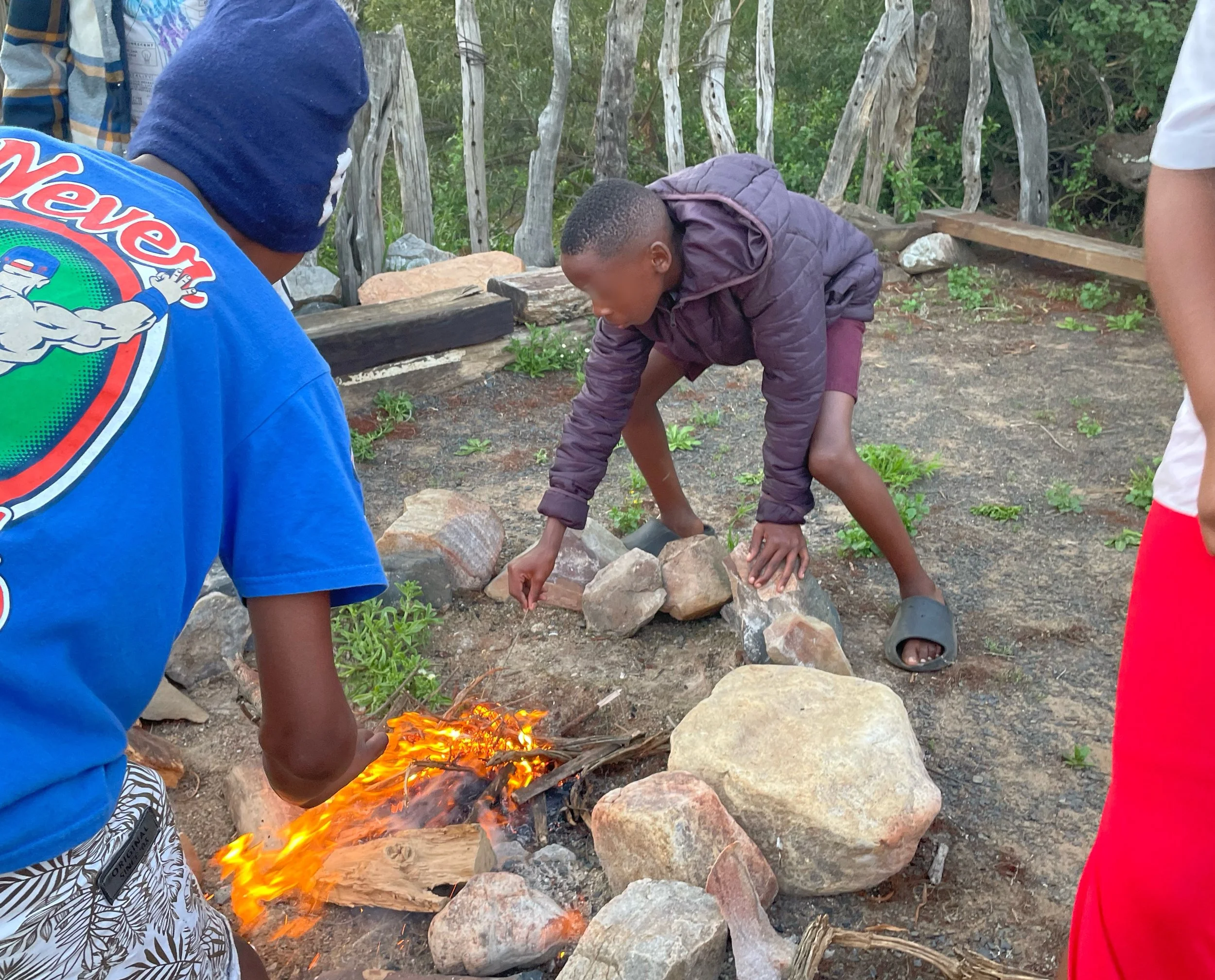 While the wind continued, we proposed to them the ‘king of the fire’ game. This is where it is the duty of the group to get all of the materials together from the surrounding area and start a fire with only one match. Everyone gets a chance to try and start it. Its not the easiest thing to do especially with the roaring winds but our boy Ichelesi stepped up to the challenge and dominated on his first attempt, and for the next 24 hours holds the crown of the Fire King.