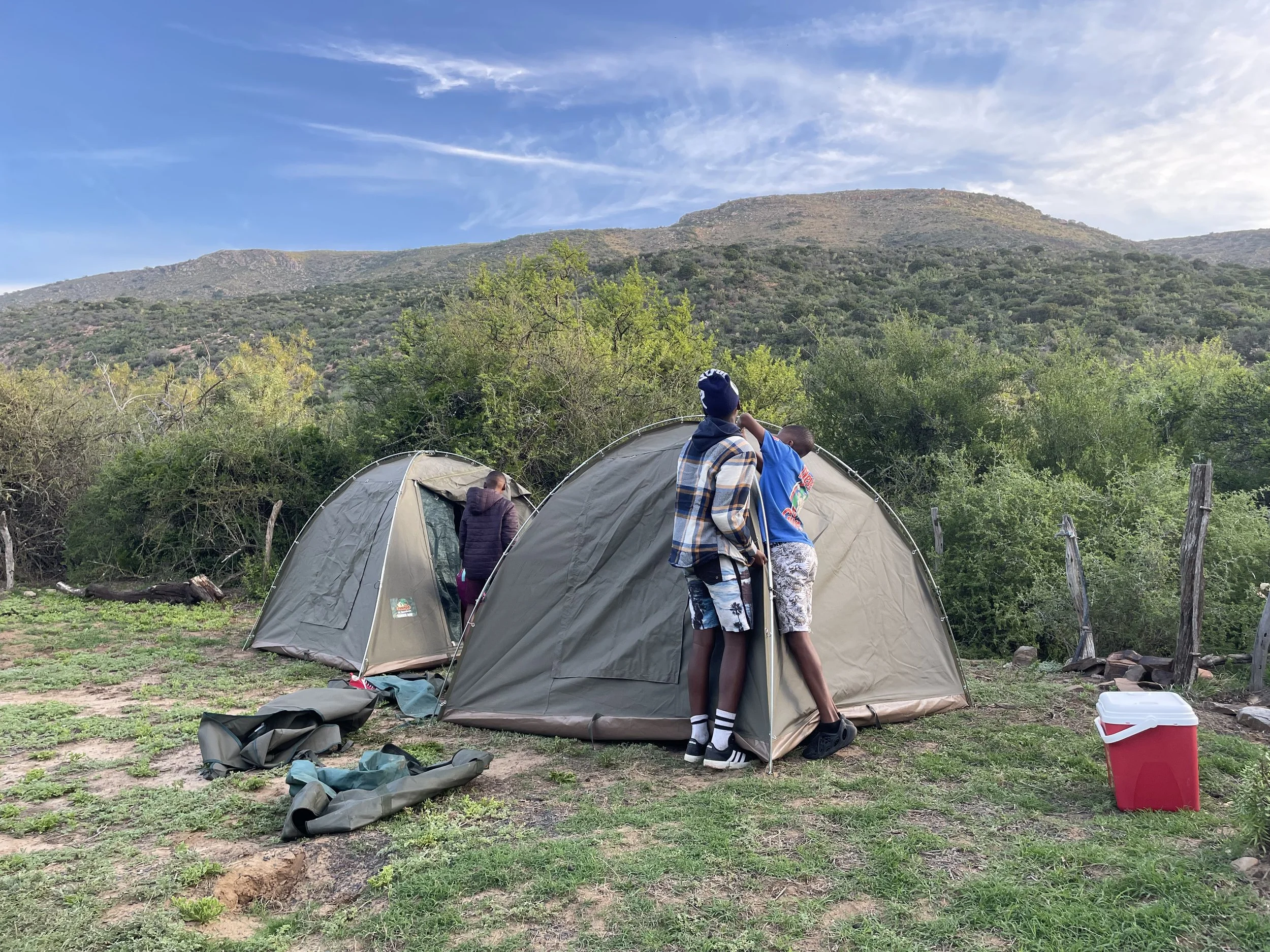 Setting up of the camp was interesting to say in the least, keep in mind that this is the very first time that any of these kids have ever gone camping, and setting up a heavy duty canvas tent is a mission even for seasoned veterans. At the start we left them to their own devices and let them try it all on their own. It was not long before we were summoned to assist with the construction of the tents. The kids take direction really well and they observed us as we showed them the idea of what needs to be done and after that they managed to set it up with little to no issue. We finished with the camp setup close to 18h30 and this is when the winds, which are quite common and famous to those who have spent some time in the Karoo, arrived in angry gusts. We were just thankful that the tents were up and pegged down solidly to the ground.